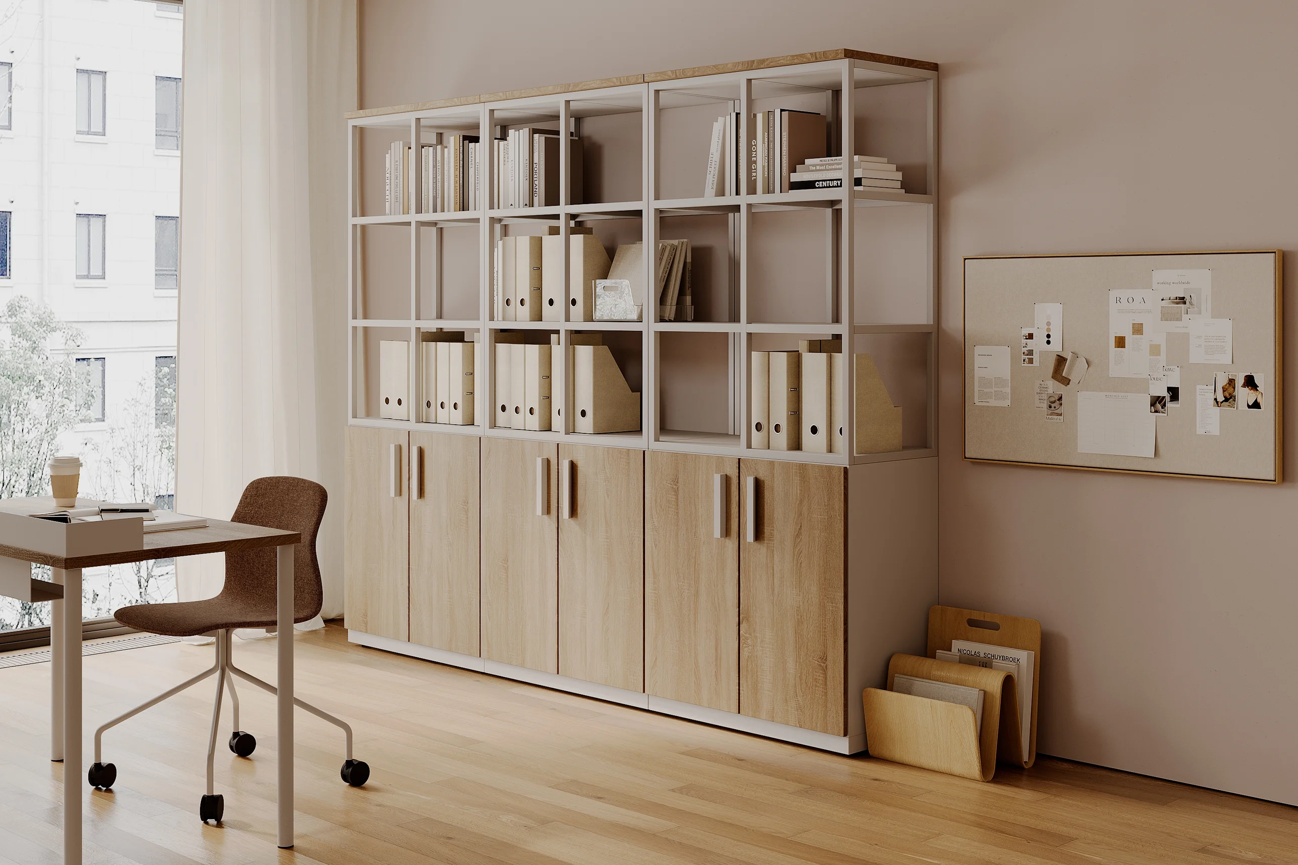 Шкаф архивный большой OASYS ША-80х5-01 RAL 9016, Дуб Бардолино натуральный